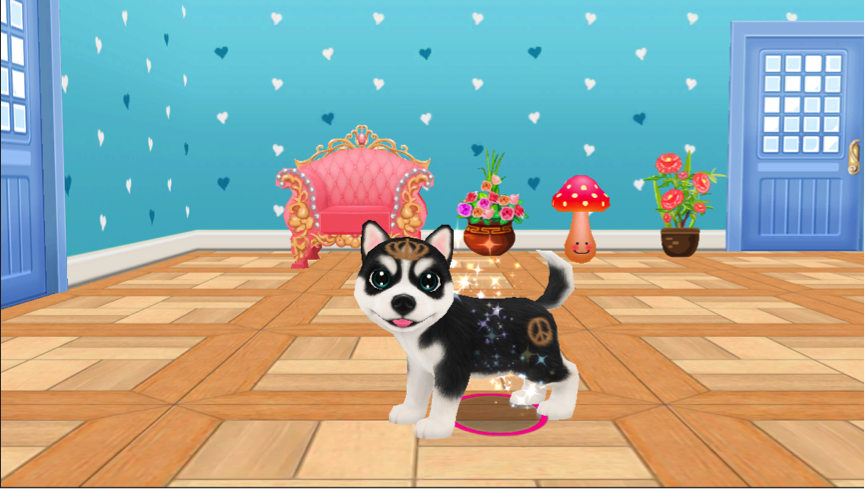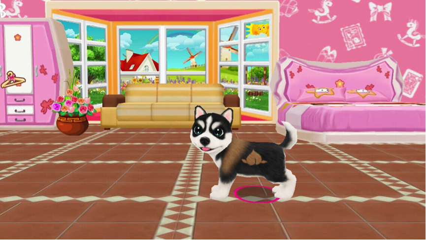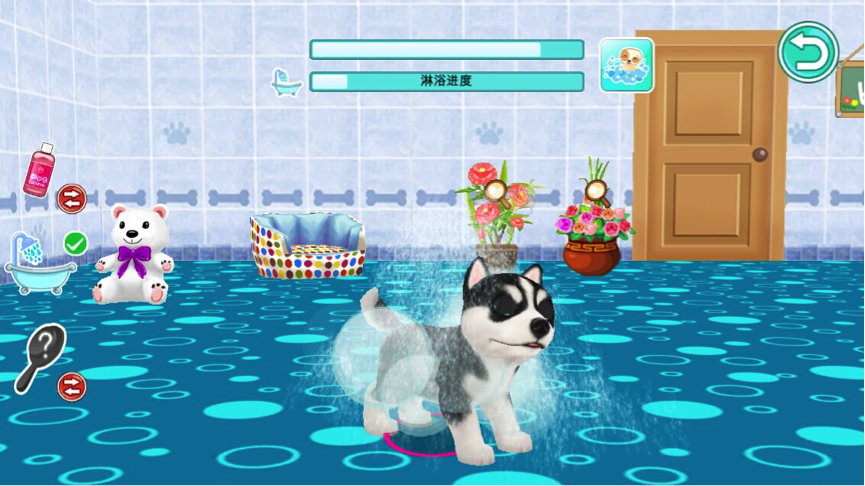 • 狗狗爱玩,也经常会变脏,要经常洗澡让狗狗干干净净的才好。点击背包里的浴液就可以开始洗澡。